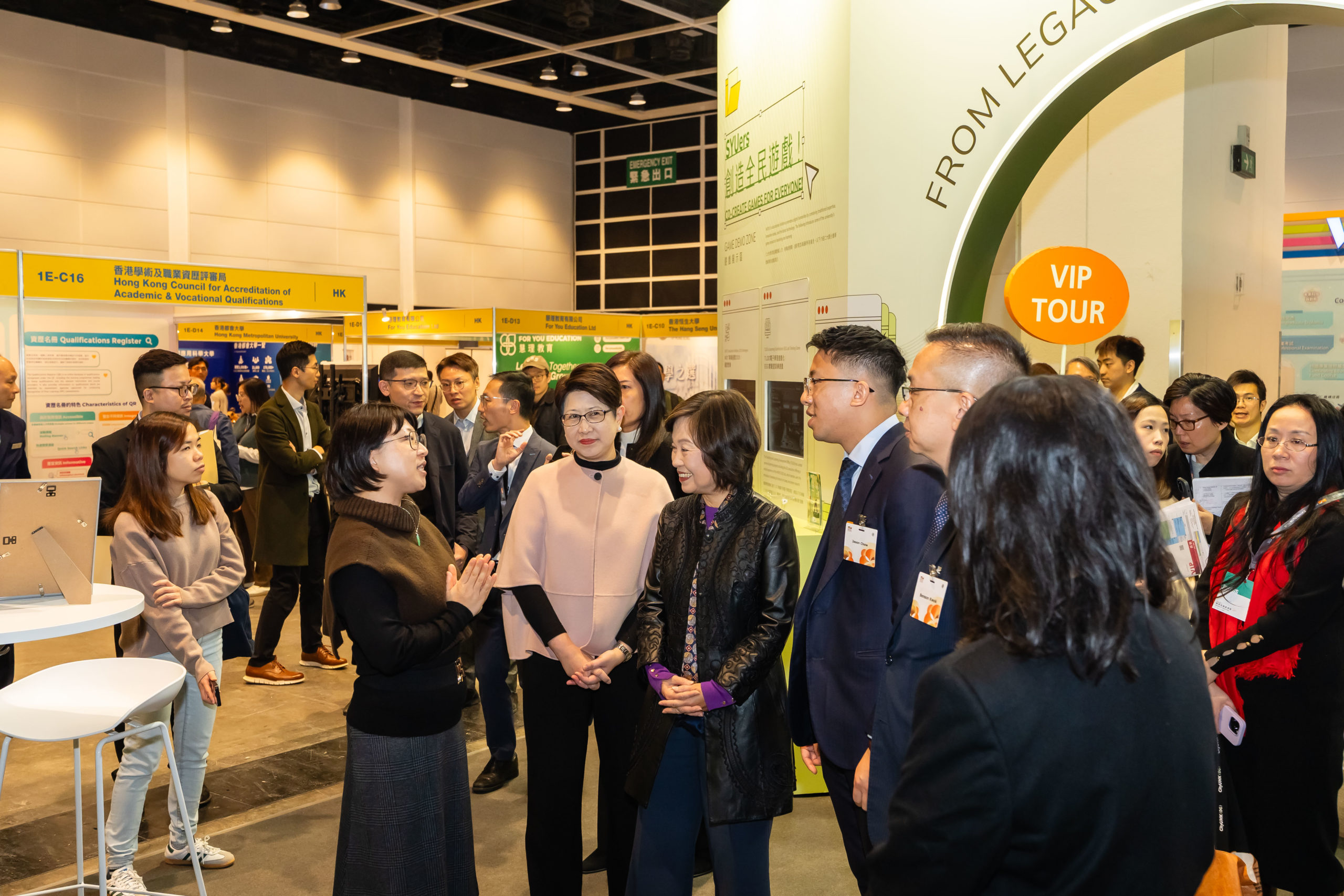 On the opening day, Dr Jason Chow Tak-sang, Vice President (University Administration), attended the ceremony and introduced the University’s booth to Dr Choi Yuk-lin, JP, Secretary for Education, Ms Sophia Chong, Executive Director of the Hong Kong Trade Development Council, and members of the media.