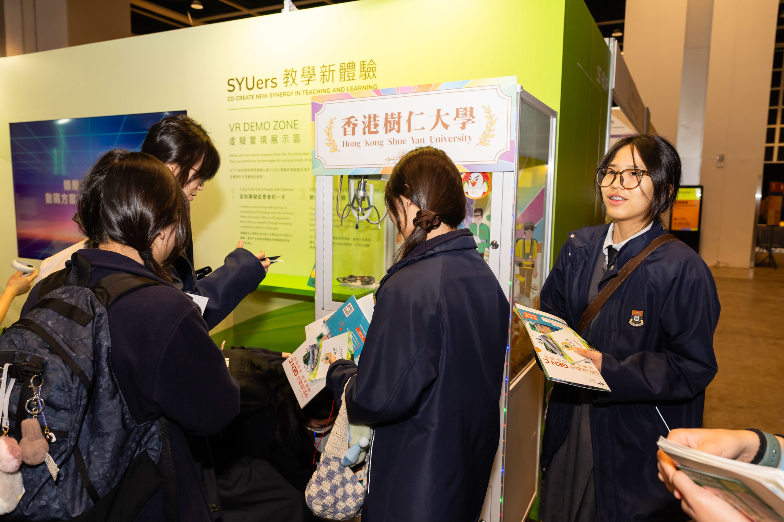 Under the theme “Co-Create Future with Shue Yan”, the University introduced its undergraduate and postgraduate programmes and campus life to visiting students, graduates, and parents through course consultations, interactive games, and immersive VR experiences.