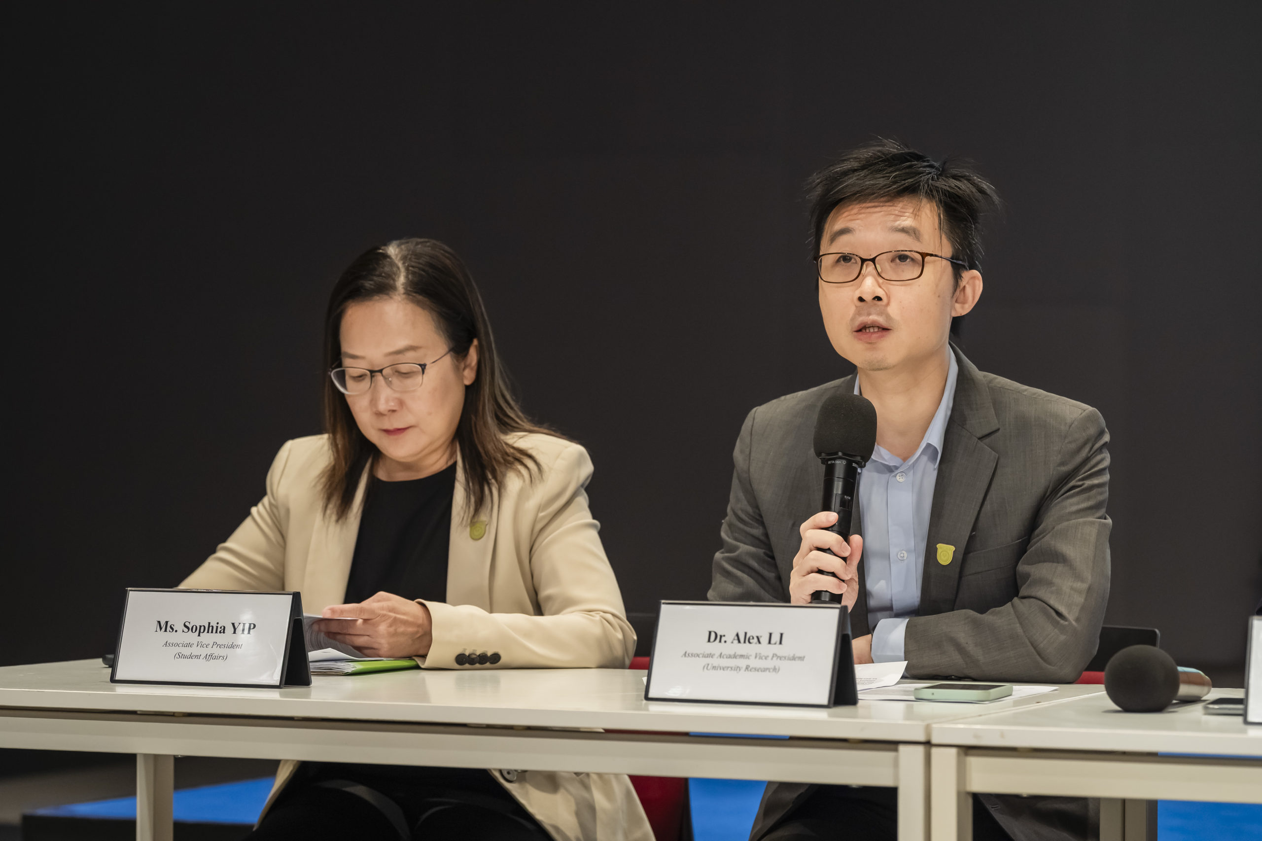 Associate Vice President (Student Affairs) Ms Sophia YIP (left) and Associate Academic Vice President (University Research) Dr Alex LI.