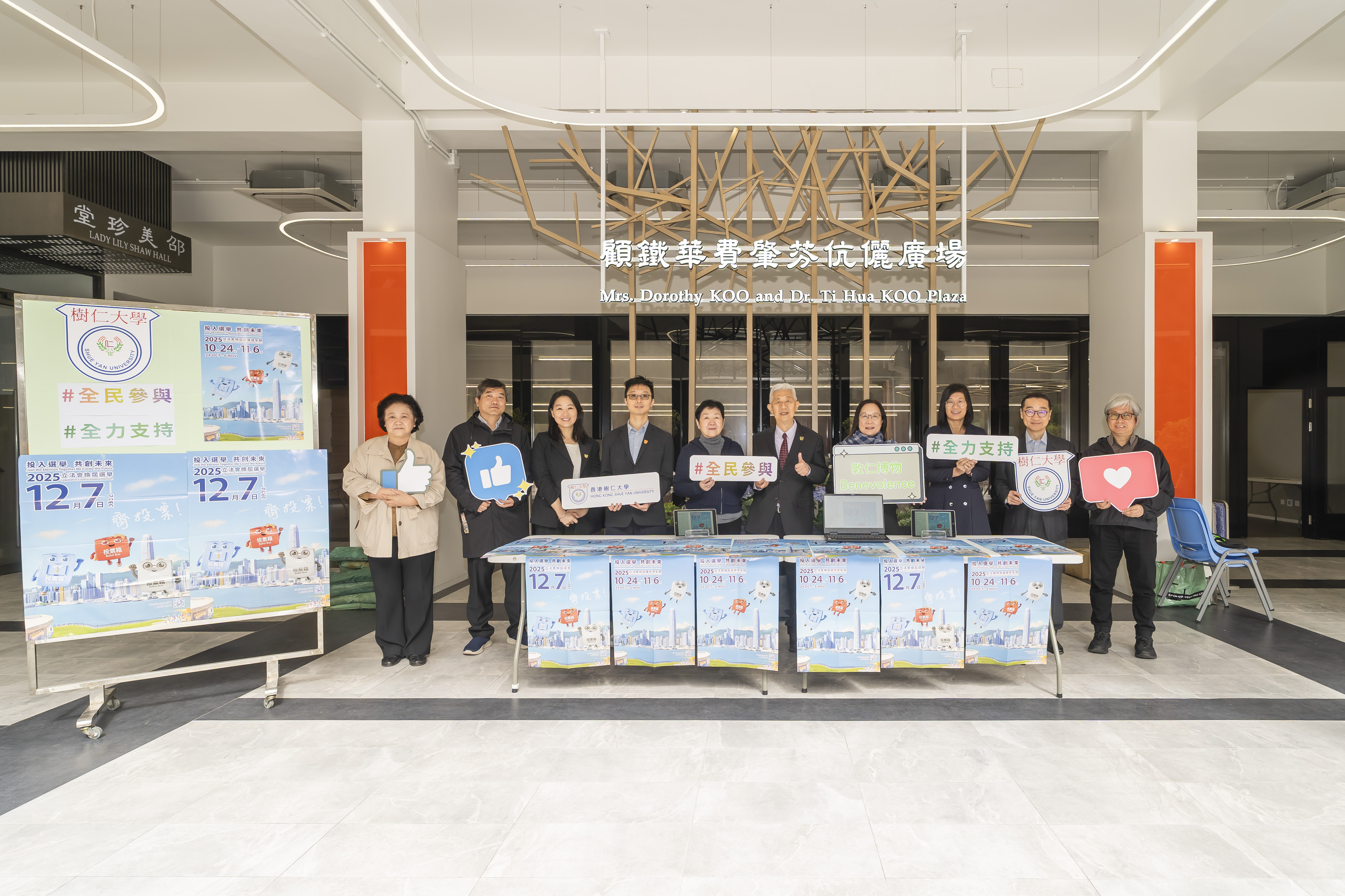 The Legislative Council General Election will be held on 7 December 2025. Hong Kong Shue Yan University encourages all staff and students to stay engaged in public affairs and to exercise their right to vote. To support this, the University has set up information booths, distributed emails, and displayed posters across campus.