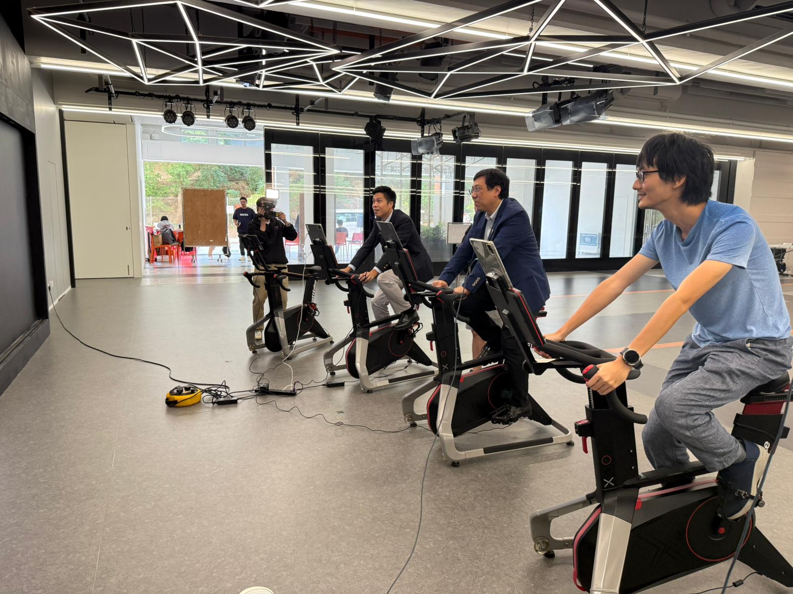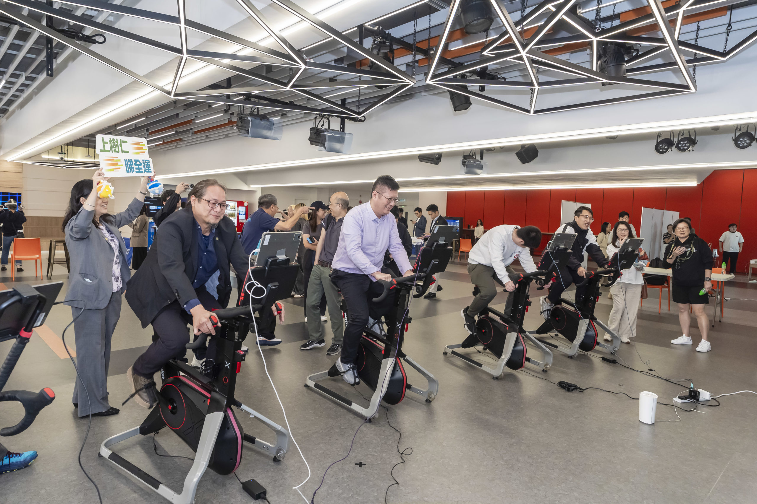 另外,仁大排球隊教練裴浩輝校友與方健銘校友,則聯同排球隊成員、社工系馬悦呈同學,於講座中講解數碼人文如何配合大學體育發展。同場亦設有武術與創科項目體驗,例如智能單車、智能拳擊及AI詠春,讓參加者感受體育與創新科技的融合。