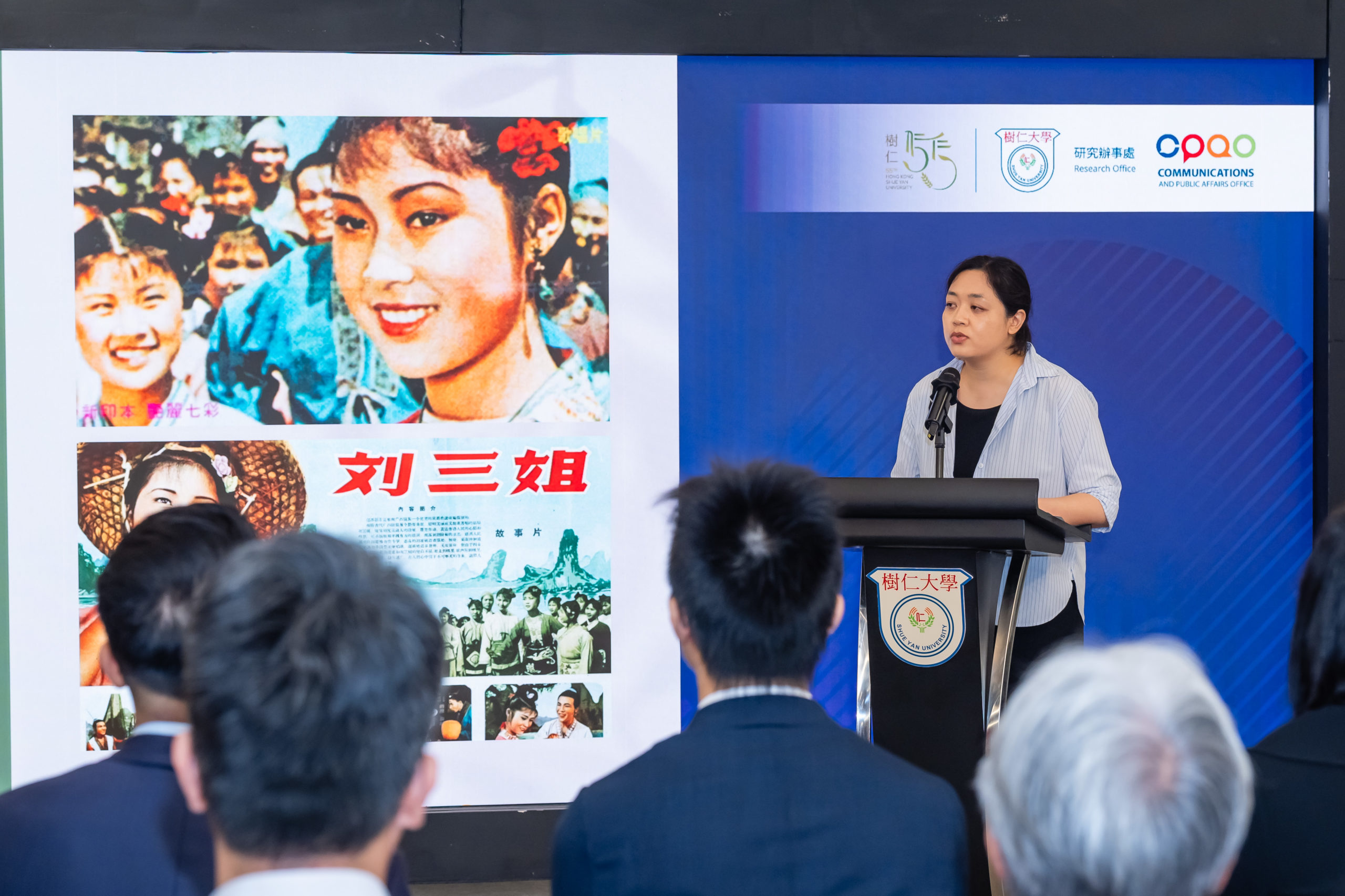 中國語言文學系助理教授陶韻竹博士分享「中樂在香港的文化傳承與傳播」,以1950至70年代藝聲唱片公司為例,指出香港作為文化十字路口,是中國音樂藉由唱片、電影等大眾媒介傳播至本地、東南亞及海外華人社群的重要平台。她形容,大量內地傳統中樂與民間音樂得以在香港保存和流傳,並推動中樂普及,為中樂在香港的發展奠定基礎。陶博士強調:「中國音樂在香港的傳承,並非單向的輸入或輸出,而是一場雙向互動的碰撞、融合與創新。」