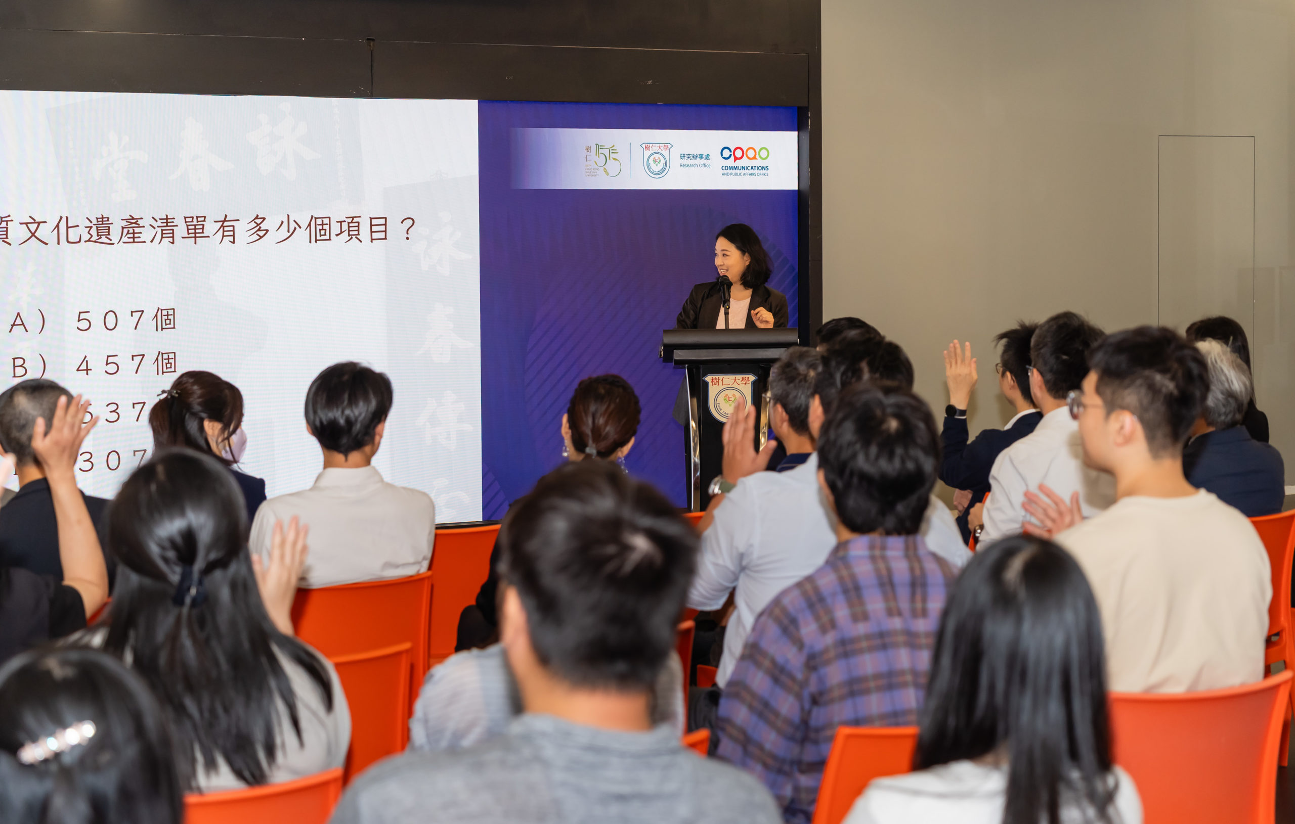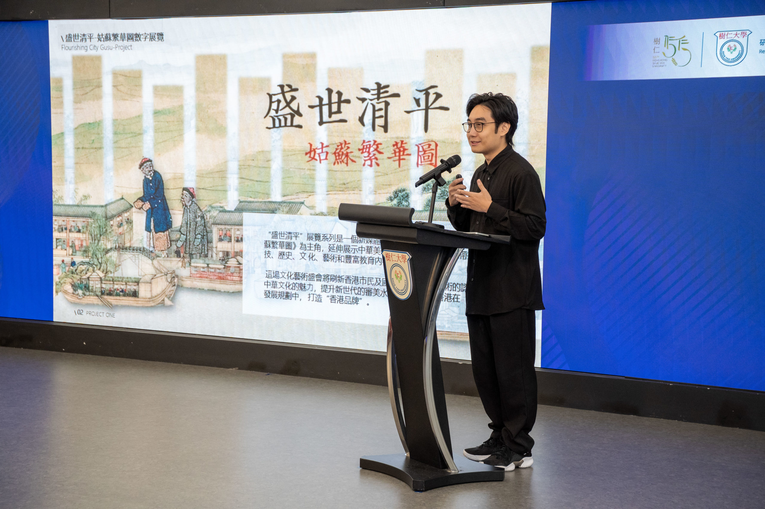 在數碼時代,以科技支援文化保育,既回應國家推動文化數碼化的方向,也體現仁大以數碼重塑人文教育的路向,透過創新的展示方式,吸引更多不同年齡層及國籍人士了解和珍惜中華文化。社會學系助理教授柯平川博士以「數碼科技推動文化遺產的傳承與傳播」為題,表示以跨學科視角,運用數碼建模、數碼化修復、VR與AR技術等數碼科技,活化與傳承非物質文化遺產與物質文化遺產,而這些創新手段能防範文化風險,在數碼時代建立國家文化安全屏障。柯博士亦分享多個善用數碼科技的研究與相關活動,包括《姑蘇繁華圖》數字化長卷項目、「數碼影像實驗室」開幕禮結合虛擬切燒豬儀式,以及通過柔性化電子皮膚的AR技術,應用於非物質文化遺產的保護與傳承。