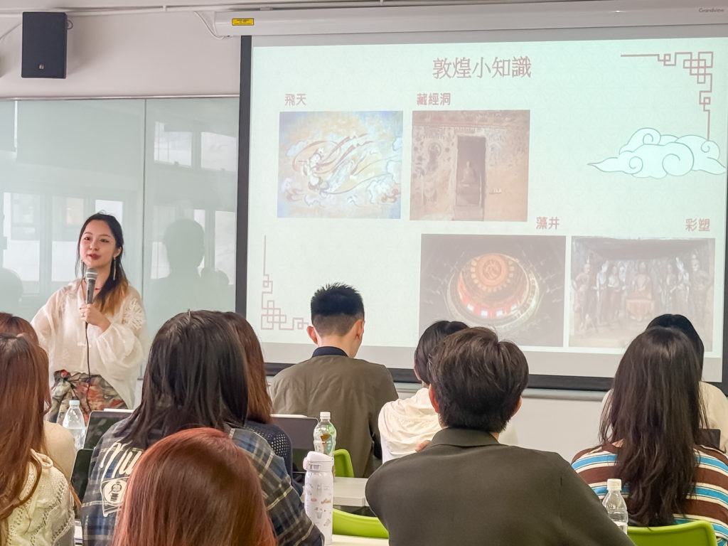 另一位來自香港大學的四年級實習生黃靖淇形容,實習經歷非常充實。每天朝八晚五到莫高窟學習,實習內容包括在洞窟門口講解、帶領團隊參觀八個洞窟。敦煌作為沙漠城市,四季乾旱,但黃同學表示,在敦煌生活的兩個月中,曾連續三天持續暴雨,非常難忘。其他難忘經歷包括在鳴沙山觀看日出、體驗「激情滑沙」及遊歷當地美術館等。她最後推介對敦煌文化有興趣的同學使用敦煌研究院的免費資源「數字敦煌」,360度欣賞洞窟全景。