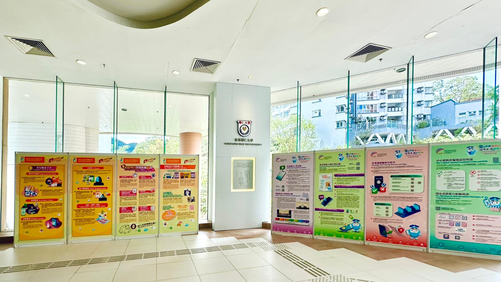 為提高學生及教職員對電訊詐騙的警覺性及保障個人資料私隱的意識,學生事務處與通訊事務管理局及私隱專員公署於10月16日至24日舉辦「提防電騙及保障個人資料私隱」展覽,旨在讓學生及教職員了解新型詐騙手法,提高自我防騙意識,保護個人財產安全。