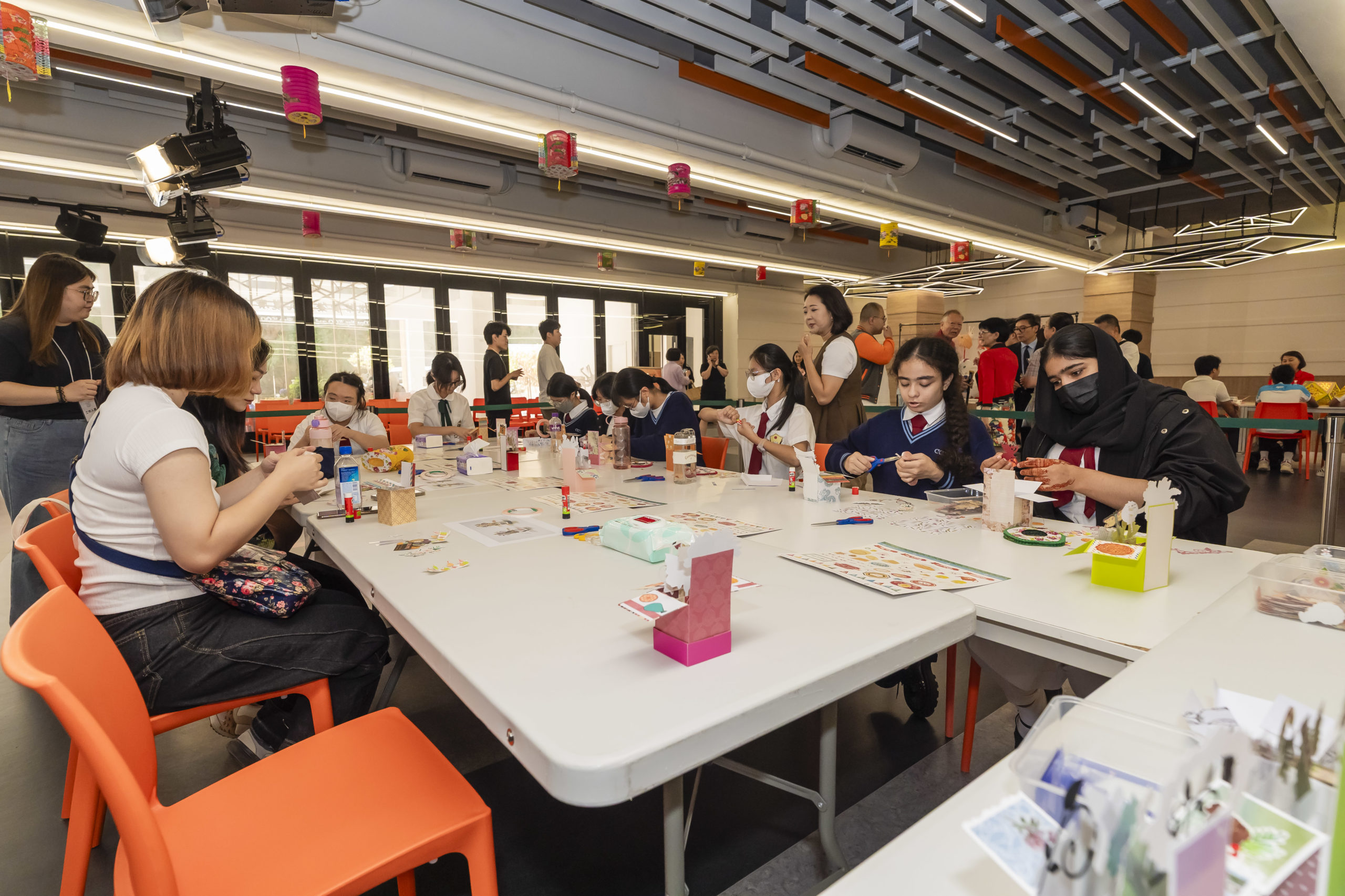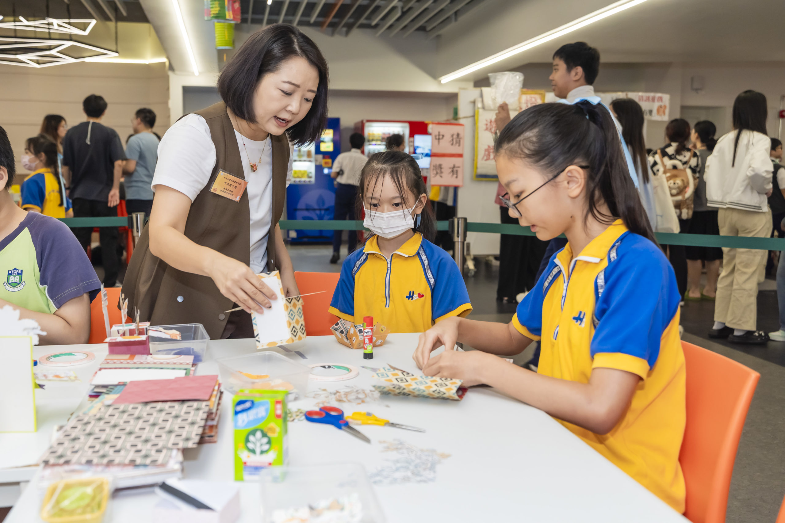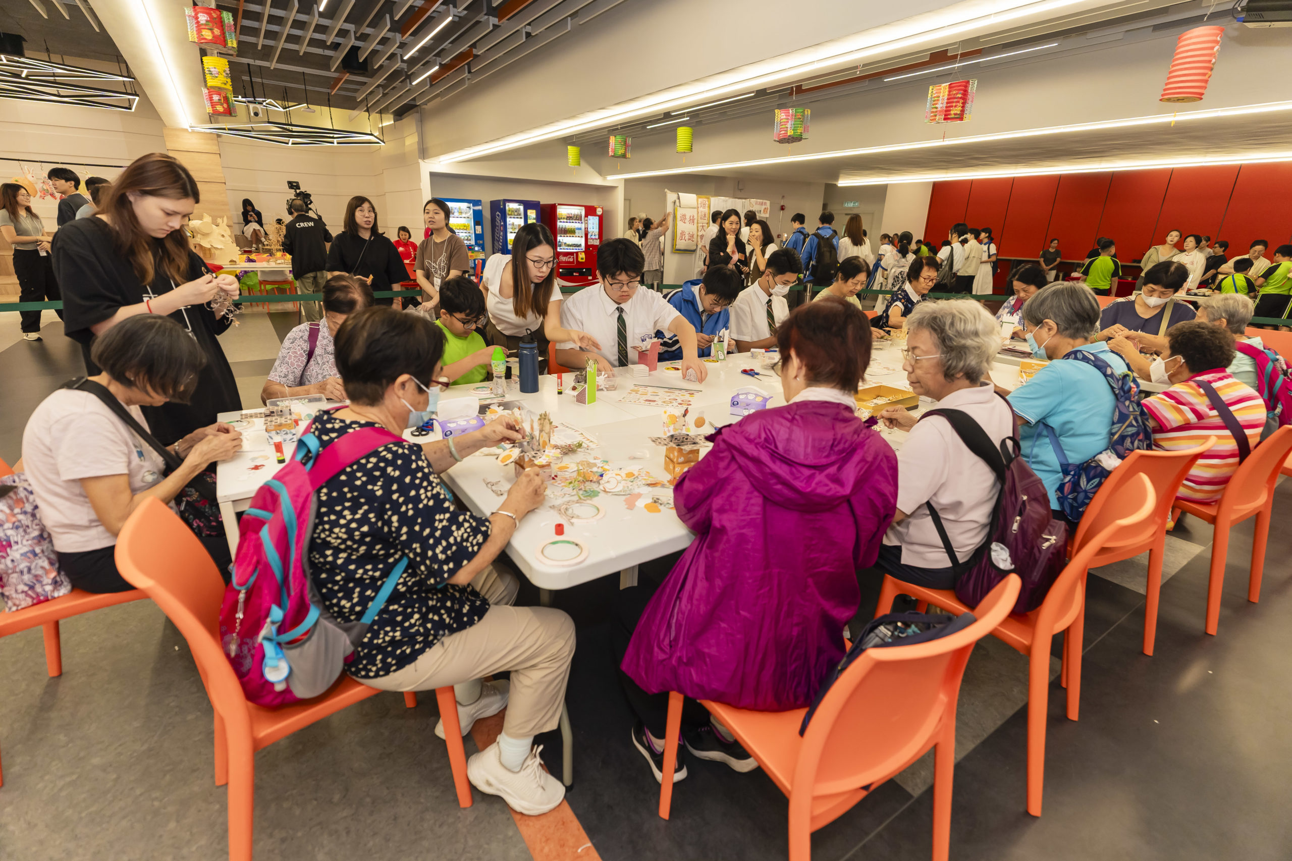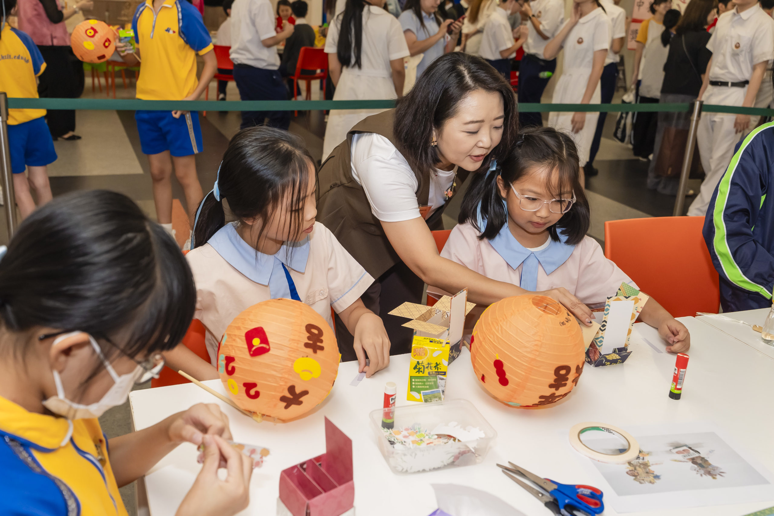 在活動攤位區,參加者分別由專家教導即製燈籠,另外亦有納入香港非遺清單的花燈紥作技藝教學,外籍老師與學生均可透過自製中秋手作禮品、猜燈謎與品嘗節慶小食,提早感受中秋氣氛。