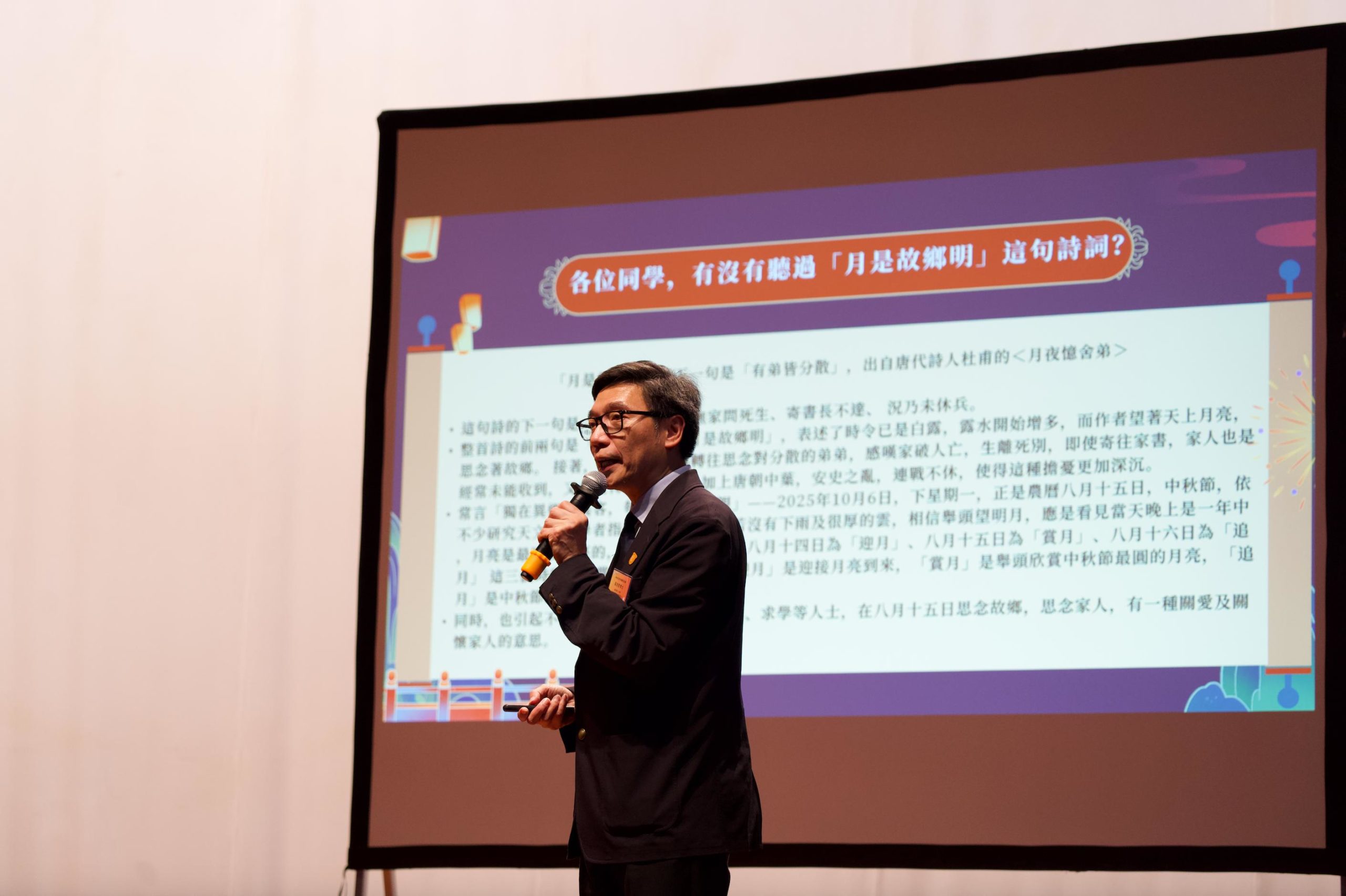 仁大助理副校長李家文博士致開幕辭時提到,中秋節被列入第一批國家級非物質文化遺產名錄,仁大作為香港首間以儒家價值觀為教育基礎的私立大學,其中一項重要使命是傳承及弘揚傳統中華文化。慶中秋活動融入多個非物質文化遺產元素,包括由仁大校友、明愛莊月明中學校長指導學生舞動特色舞火龍及中樂表演。同場亦有以月亮、潮州文化等主題講座。