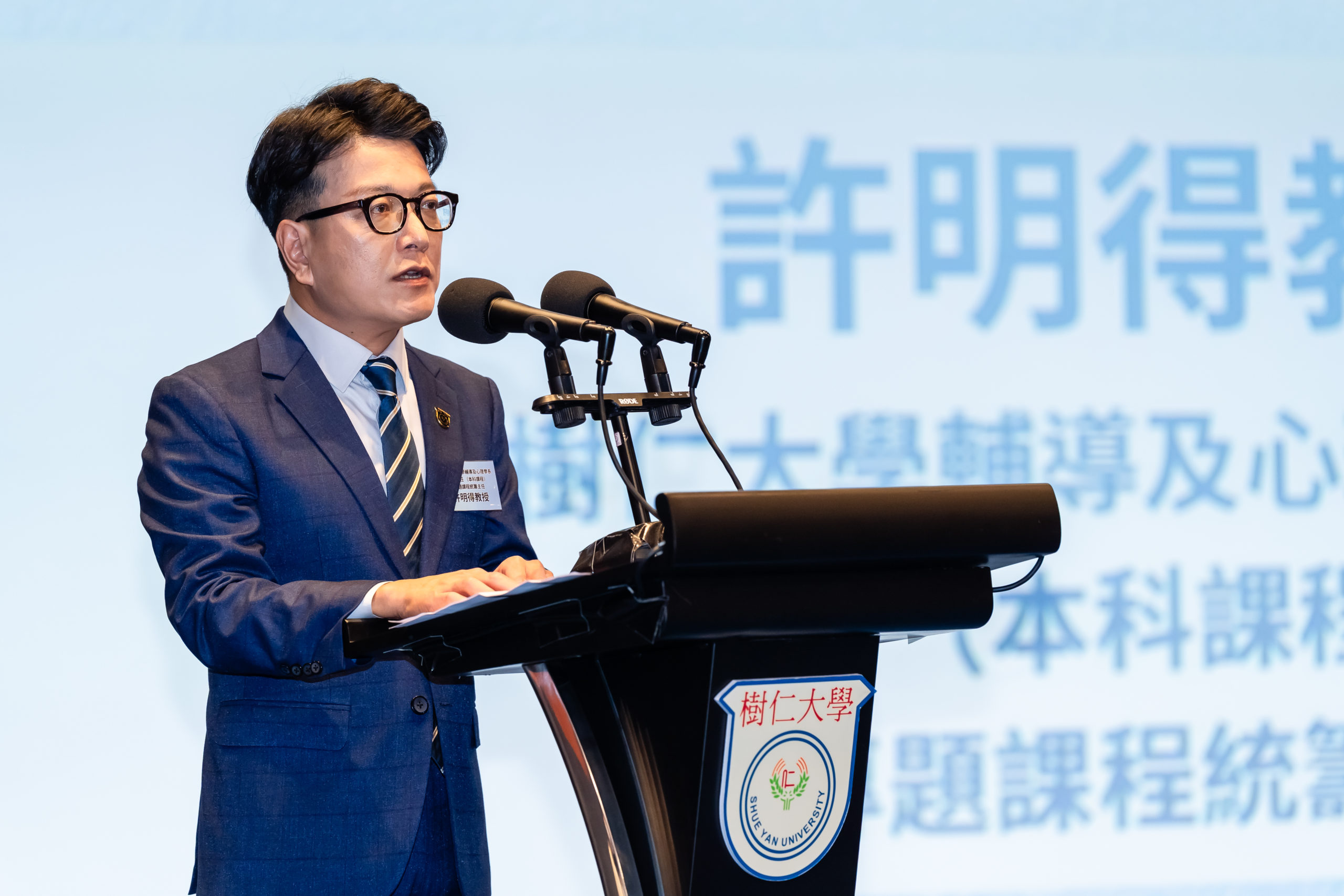 副校長(研究院)兼「支援有特殊教育需要學生專題課程」統籌主任許明得教授致辭時,感謝教育局委託仁大提供「支援有特殊教育需要學生」專業培訓,為參加者建立長期交流的平台,即使來自不同學校,他們仍能在課程內外分享,達致資源互助。他亦引述數據稱,6082名6至17歲在學兒童及青少年中,其中24.4%在過去一年受到至少一種精神疾病困擾,當中更涉及自殺念頭或行為;而2024/25年度向醫管局精神科專科門診求診的新症中,6至18歲群體達1.1萬宗。