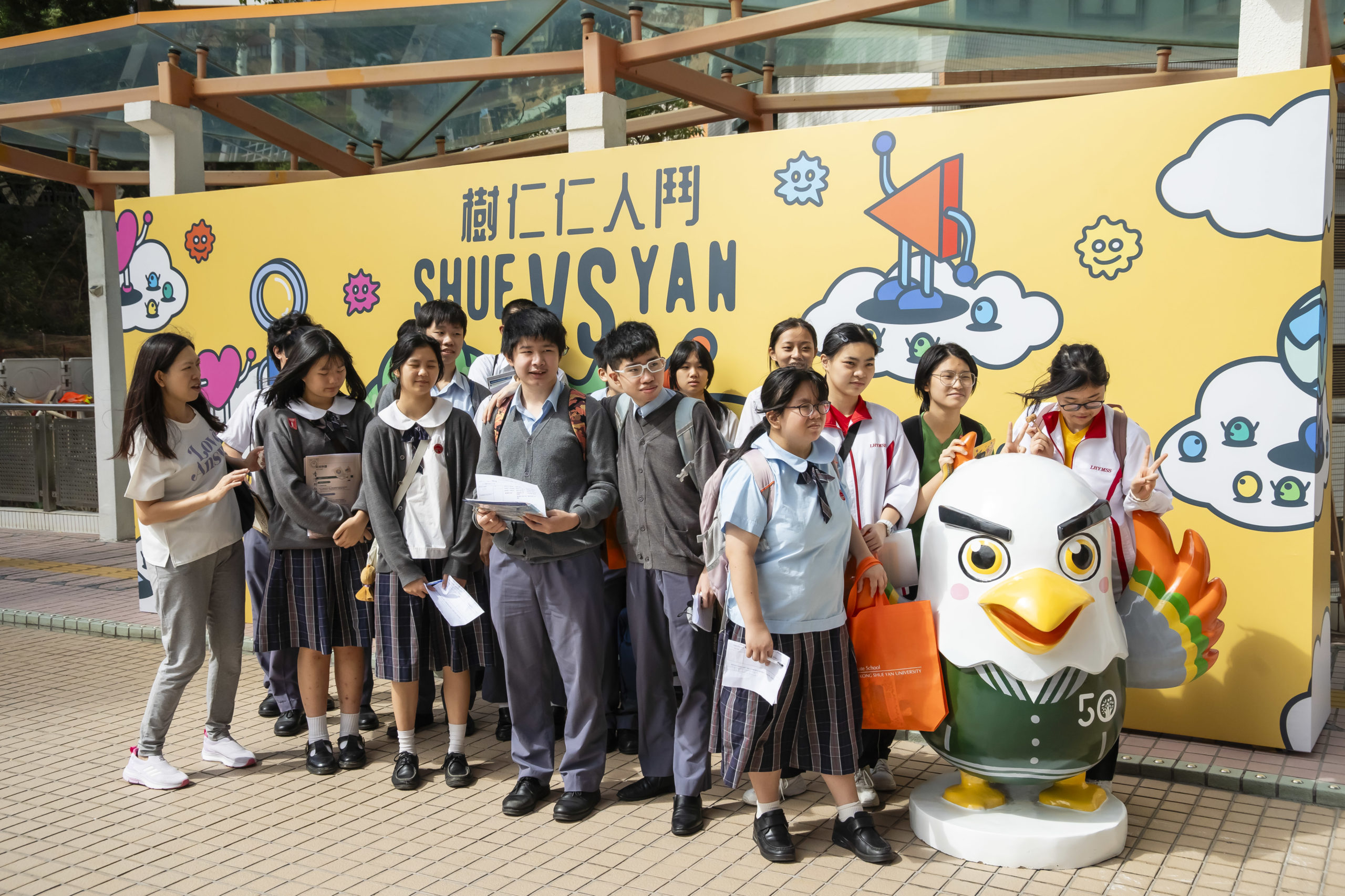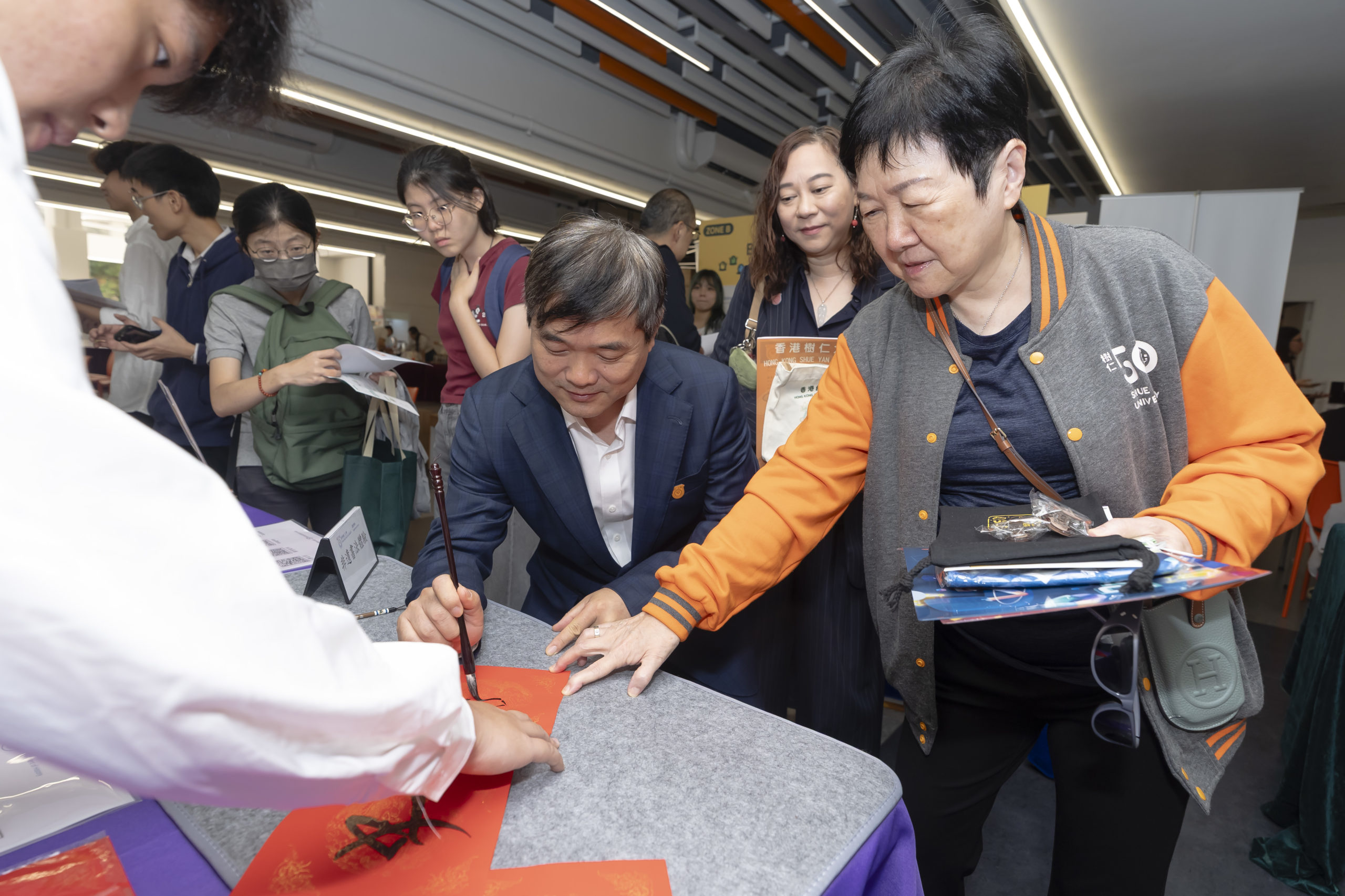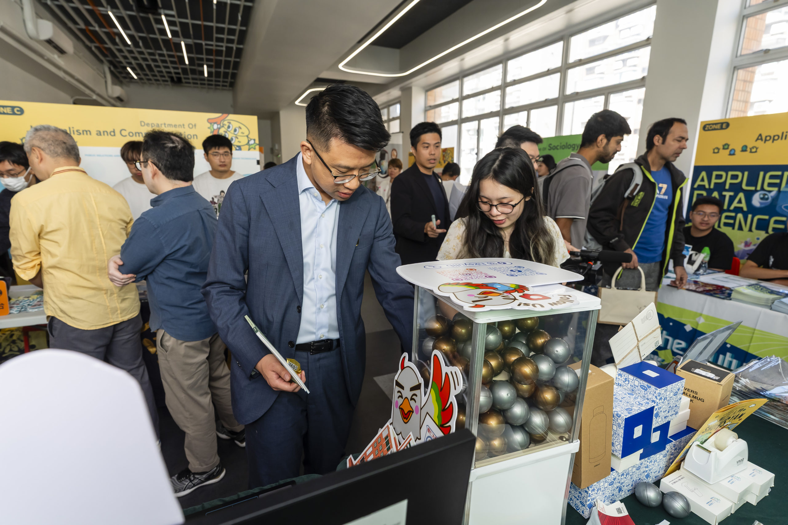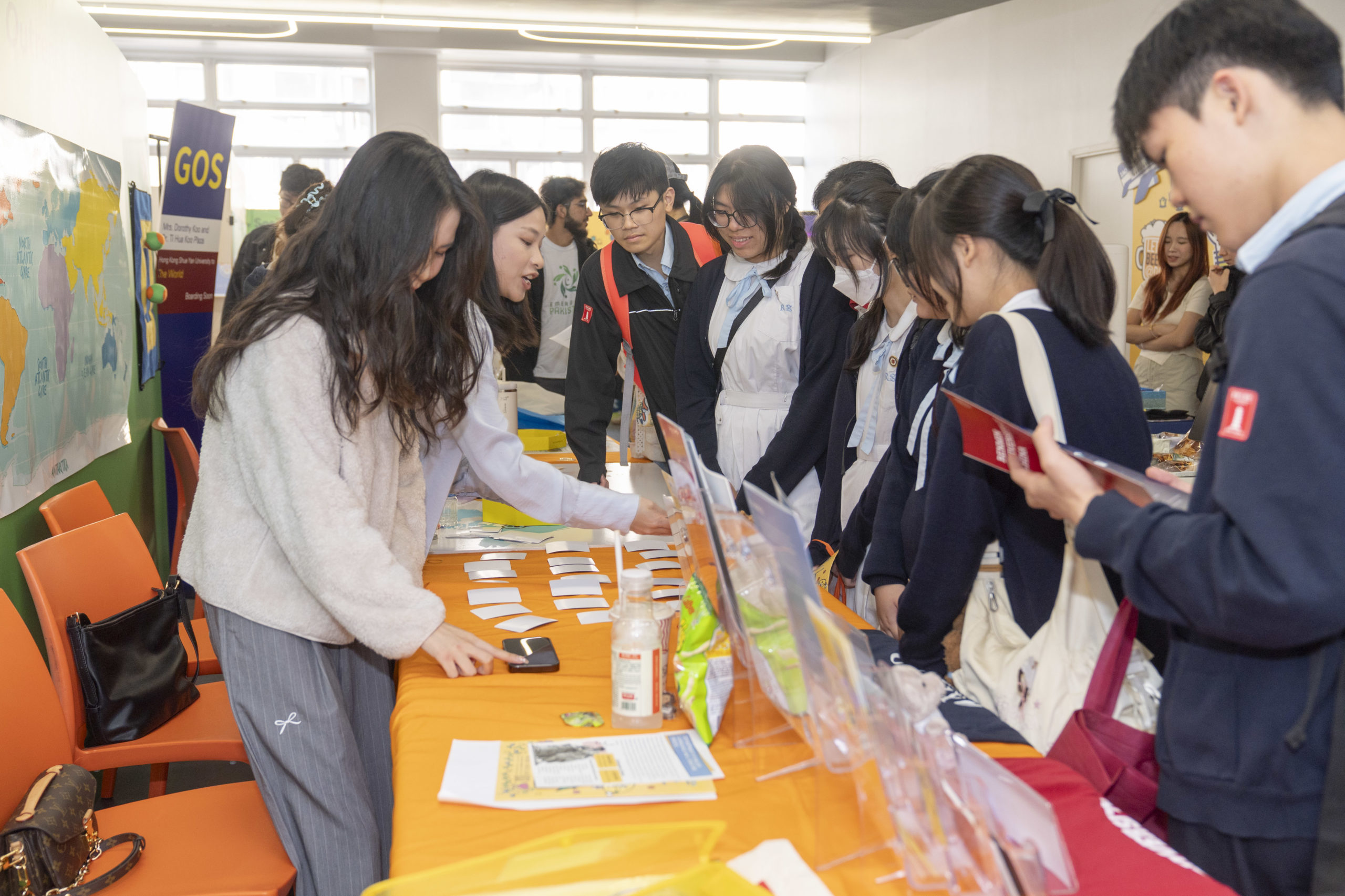 首席副校長孫天倫教授亦到場參觀各學系在伉儷廣場的攤位並與學生互動,校方又安排參觀新落成的遊戲開發實驗室、模擬法庭及混音室等設施,並由學生大使及教師即場向同學與家長介紹多元化的課程和服務。