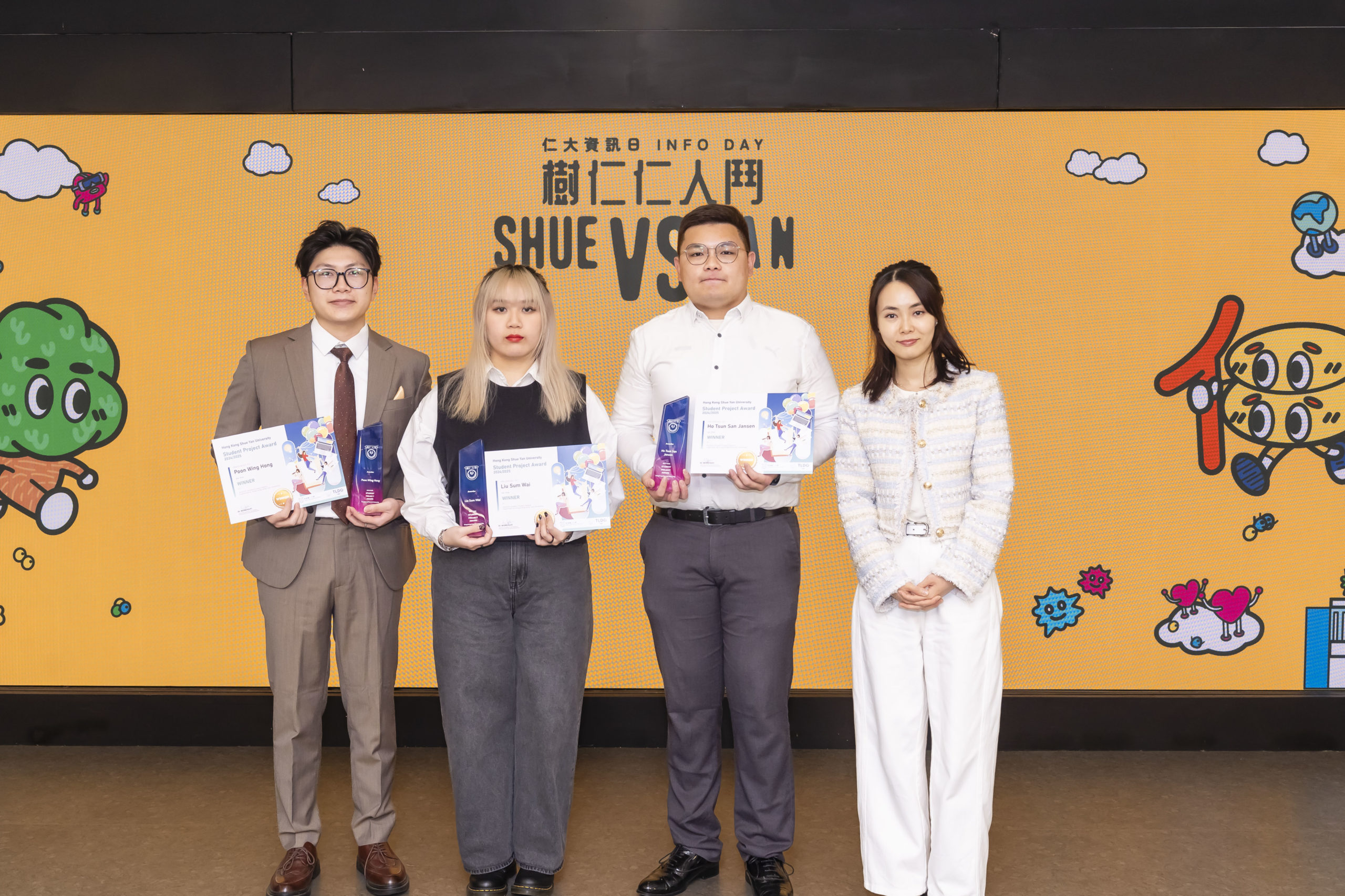 學生專題獎得主為經濟及金融學系四年級生潘永康、媒體設計與虛擬實境科技課程畢業生廖心蔚,及新聞與傳播學系畢業生何畯新,作品題目分別是「學術界與社交媒體對遊戲產業中生成式A I非玩家角色的看法」、「惡運驅散」與「孤島中的家」。