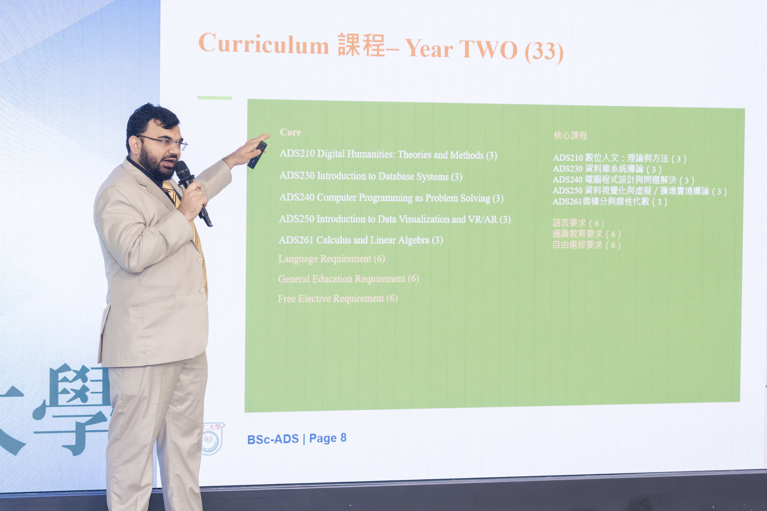 「賦能未來勞動力:應用數據科學」講座由應用數據科學學系副系主任Muhammad AZHAR博士主講,介紹應用數據科學本科課程的教學理念、課程結構及未來就業前景,為在場學生與家長提供全面的升學資訊。