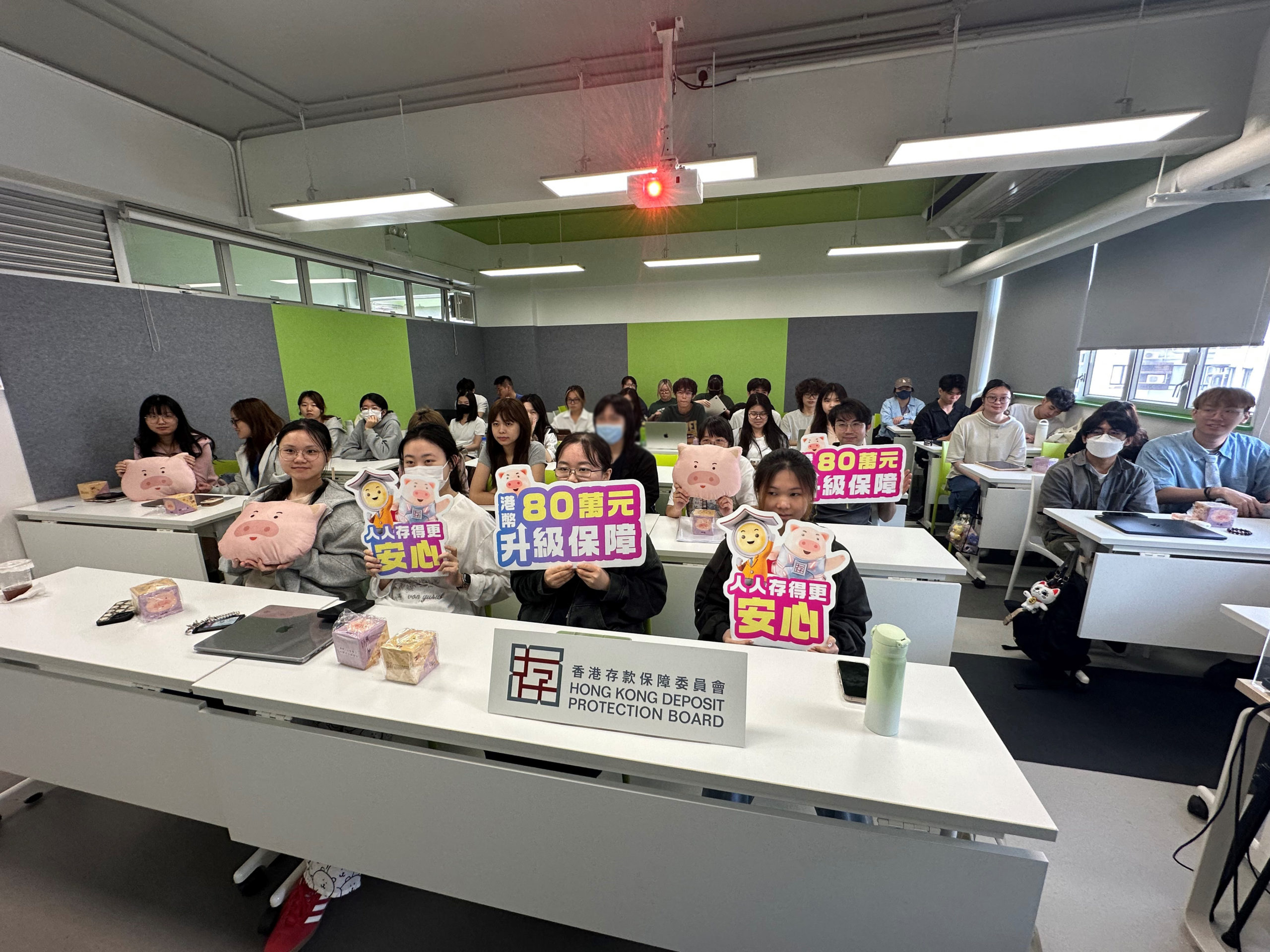 為提升學生對香港存款保障計劃的認識,學生事務處與經濟及金融學系於2025年10月8日及10月9日聯合舉辦兩場「香港存款保障計劃」講座,邀請香港存款保障委員會宣傳及社區教育助理經理麥凱淇小姐擔任主講嘉賓,讓學生認識儲蓄和金融知識的重要性、預算與資金管理及未來財務規劃等,兩場講座合共80人參與。