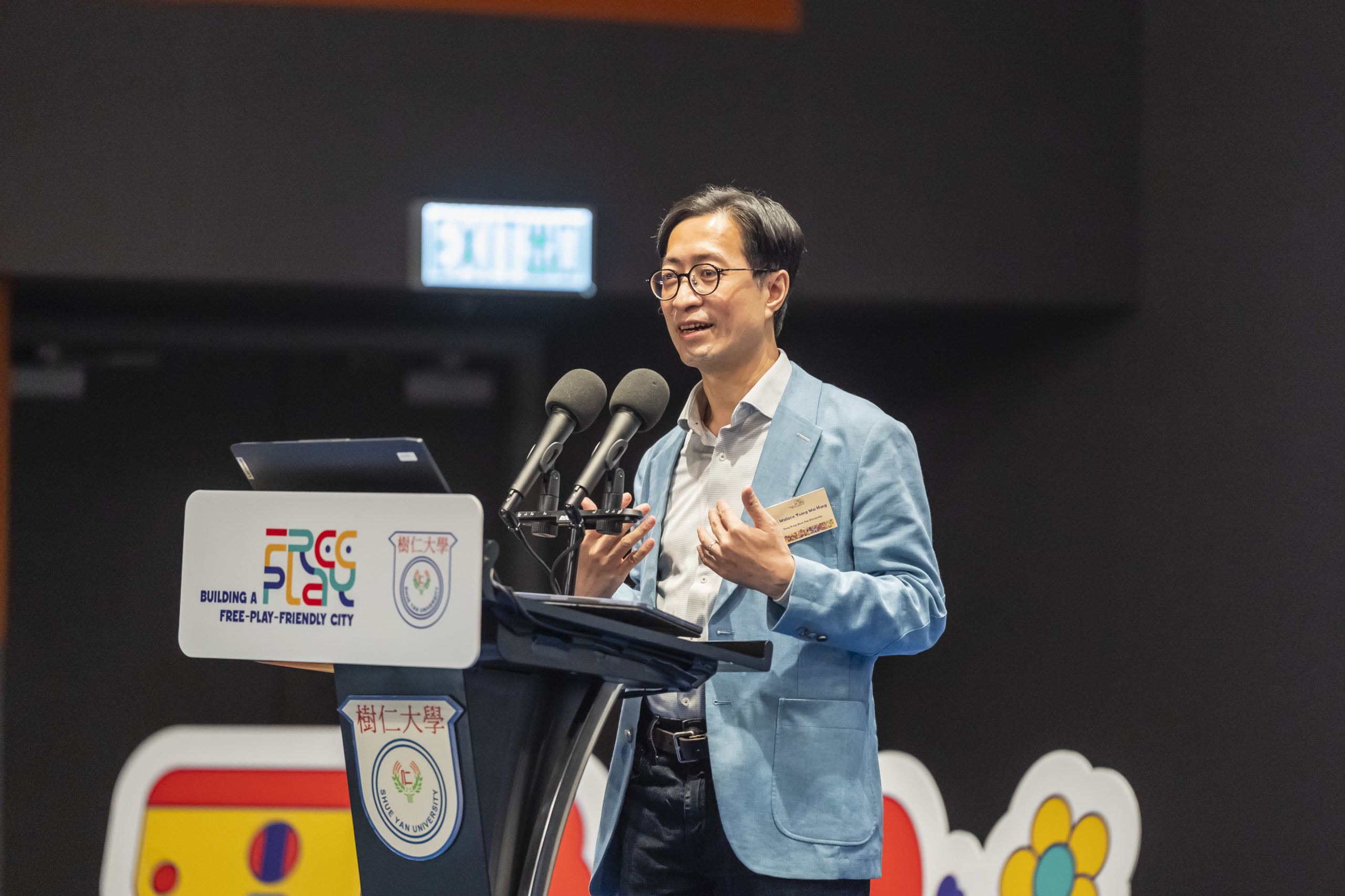 負責研討會的社工系助理教授曾偉洪博士表示,以「親子共創歡樂社區」為題發表演講。他介紹「賽馬會智樂好玩社區同盟」計劃,透過在民居附近的公共空間建立「遊戲基地」,讓兒童、家長或長者定期參與社區遊戲,從而凝聚社區力量、提升幸福感。