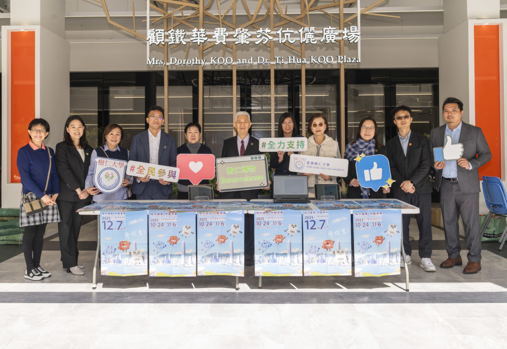仁大管理層及學系代表到攤位響應投票,包括(左起)中文系系主任楊若薇教授、歷史學系系主任何其亮教授、助理副校長李家文博士、協理學術副校長(大學研究)李允安博士、首席副校長孫天倫教授、署任校長胡懷中博士、協理副校長(學生事務)葉秀燕女士、助理學術副校長呂哲盈博士、法商系系主任梁慶豐教授、經融學系系主任李樹甘博士。