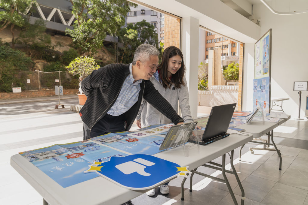 工作實習辦公室總監蘇啟智先生(左)瀏覽選舉資訊。