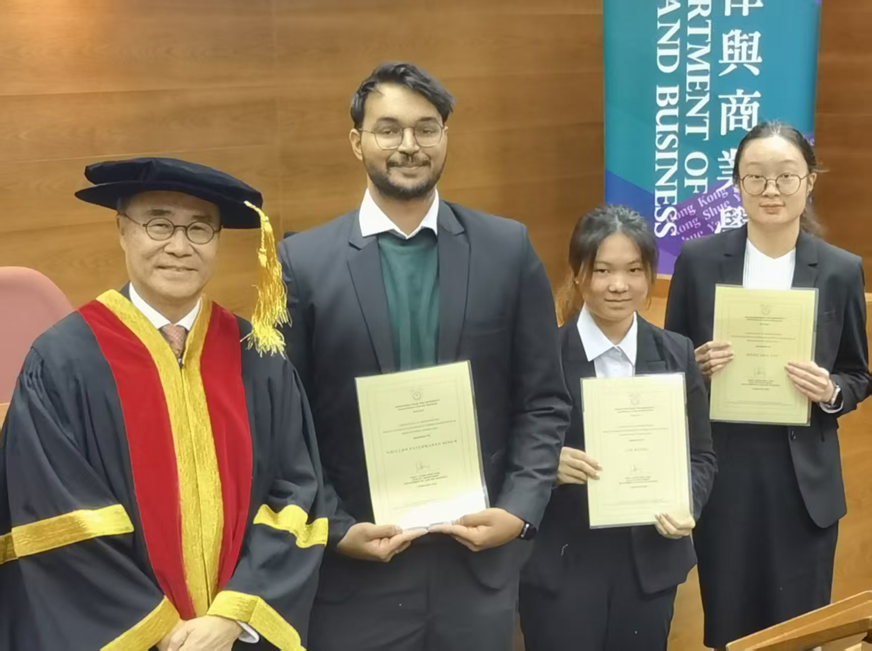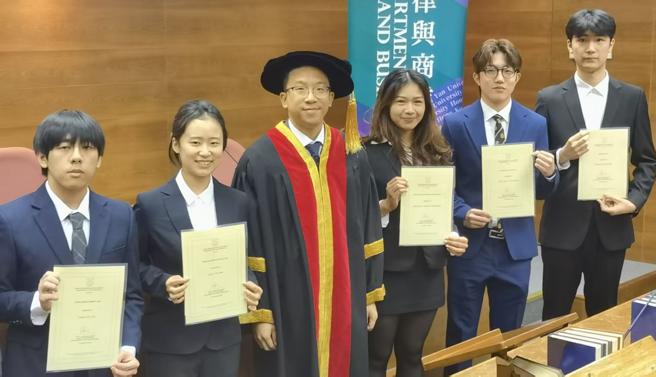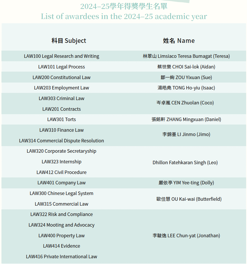 仁大法律與商業學系於2026年2月1日畢業禮當天舉行年度頒獎典禮,表揚在2024至25學年學業成績優異的學生。校長胡懷中博士、高等法院上訴法庭法官兼校董會成員區慶祥先生、同為校董會成員的許偉強資深大律師,以及行政副校長周德生博士出席頒獎禮。